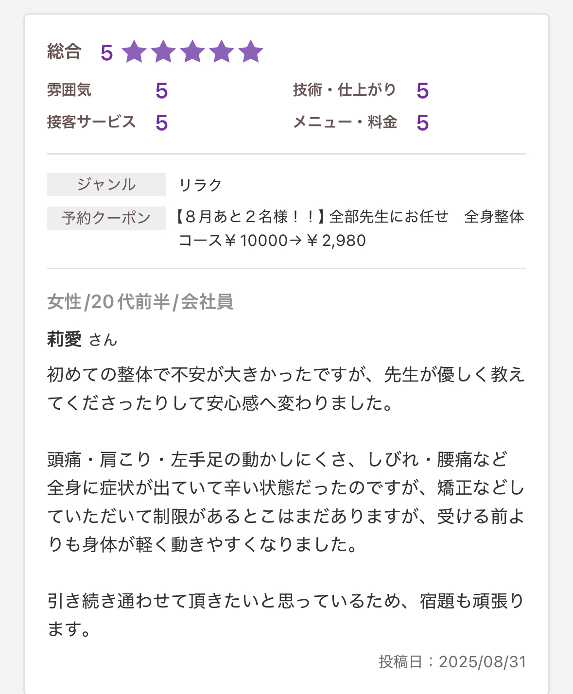 ホット口コミ1 | 福岡県・福津市・福間駅 きずな整骨院・きずな整体院